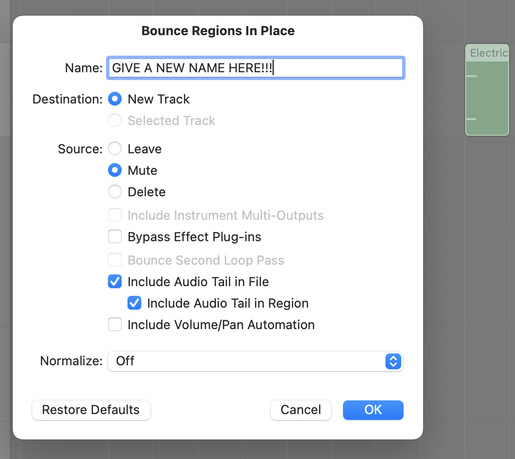 • Bounce what you've done to a new track: